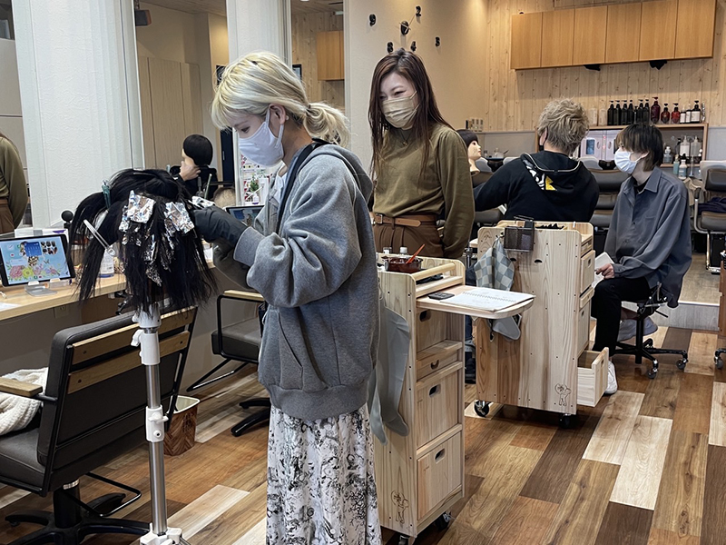 ninaではほかのサロンと違いシャンプーと並行してカラーやパーマレッスンも行います。